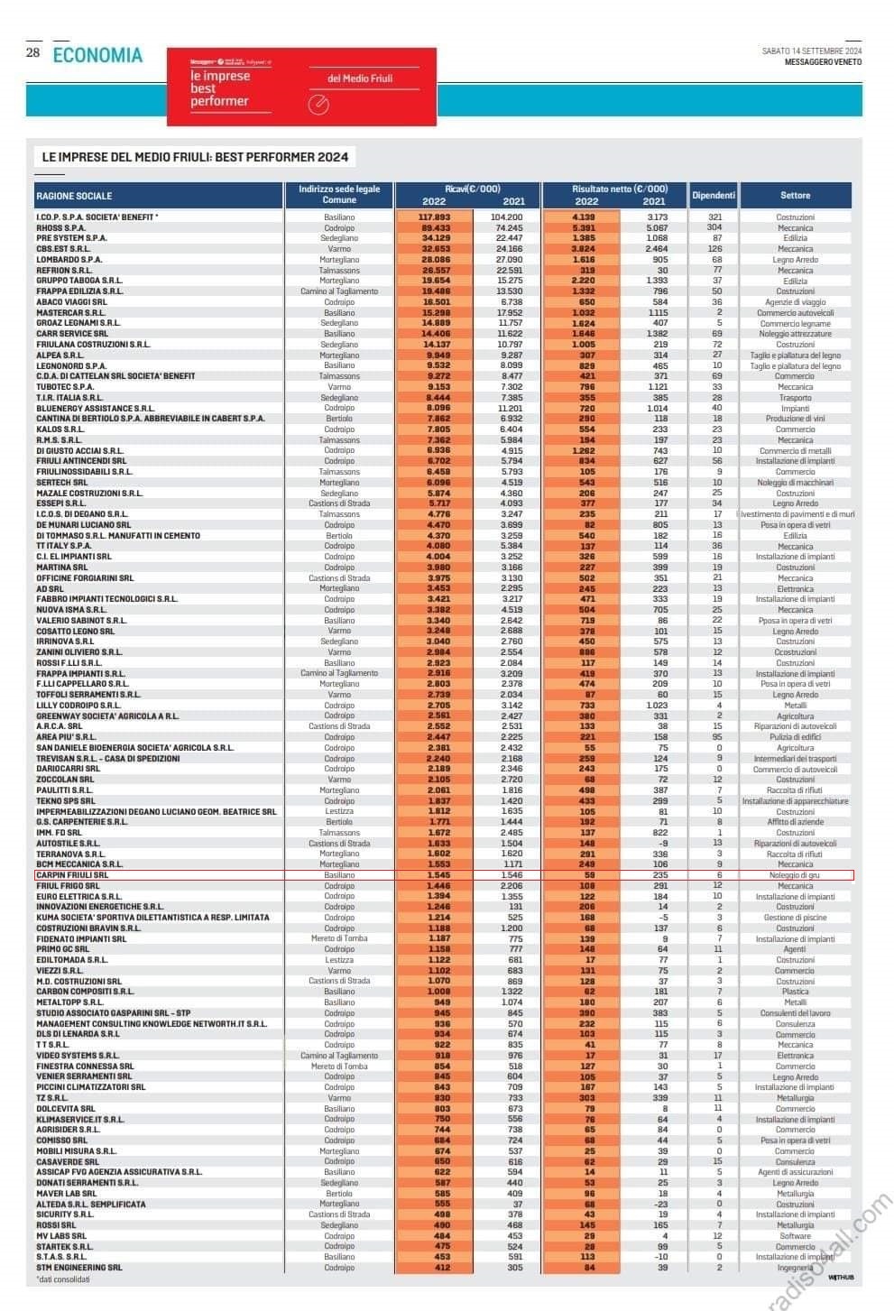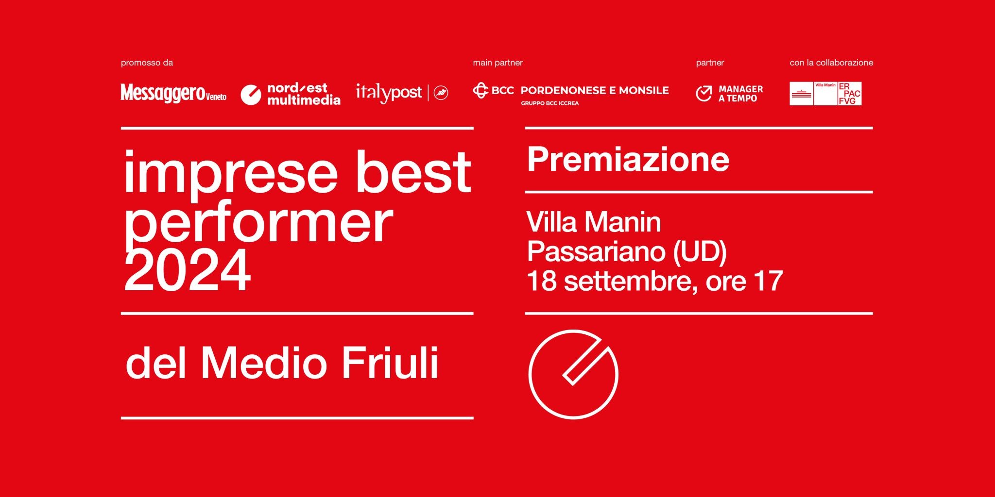 Carpin Friuli è tra le aziende premiate tra le 100 Migliori Imprese Del Medio Friuli per i suoi risultati e il contributo al tessuto economico locale. Nell’ambito dell’evento Best Performer 2024, iniziativa promossa dal Messaggero Veneto, Nord Est Multimedia Spa e ItalyPost.